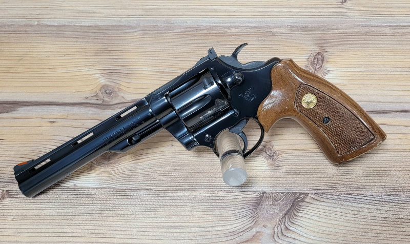 Lauf innen sehr gut - blank! Timing alle 6 Kammern sehr gut. Die Brünierung ist vollständig erhalten, lediglich am lackierten Original Colt Holzgriff finden sich leichte Gebrauchsspuren.
