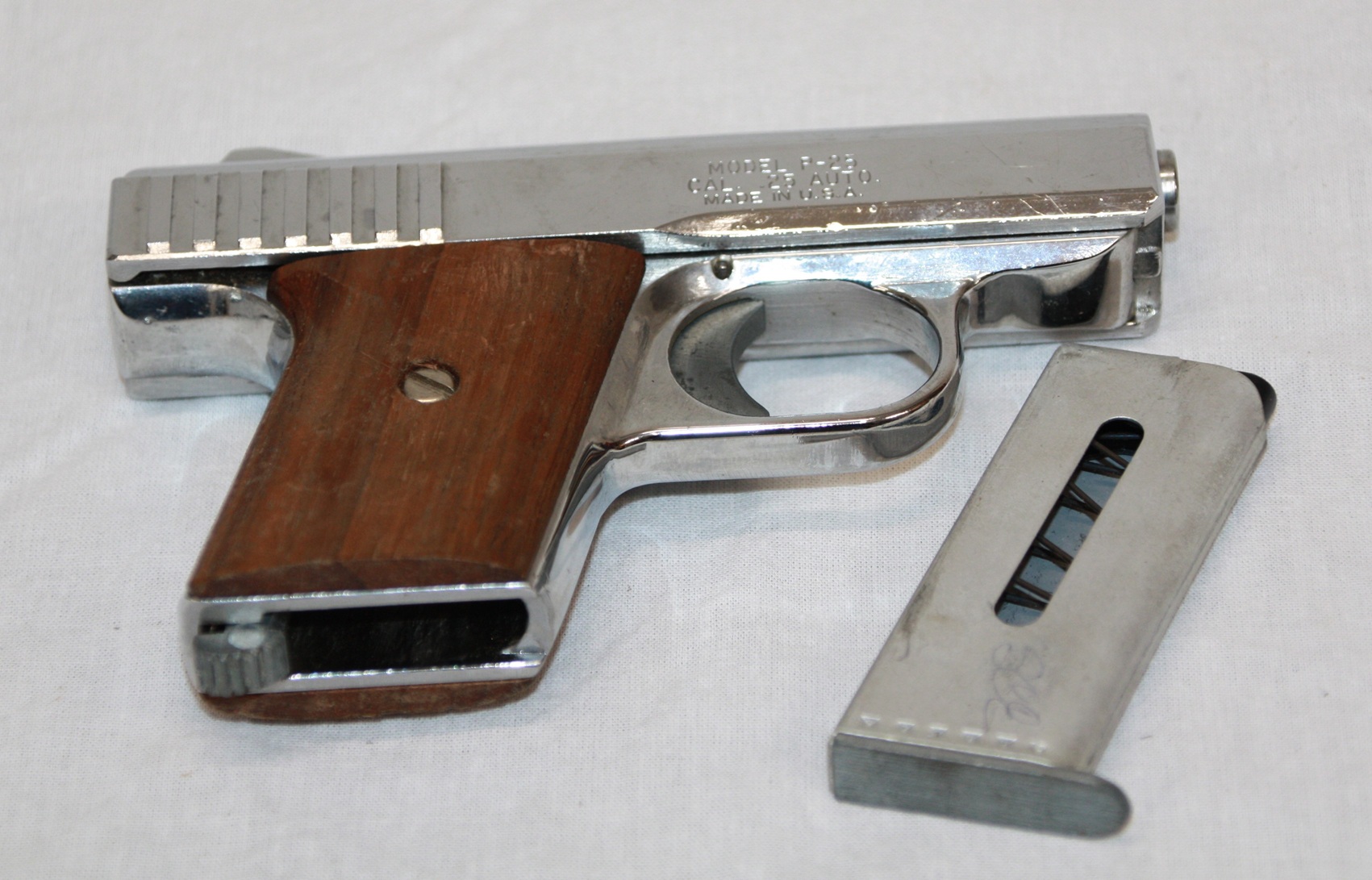 Kal 6,35 (.25 Auto) made in U.S.A. Vernickelt.