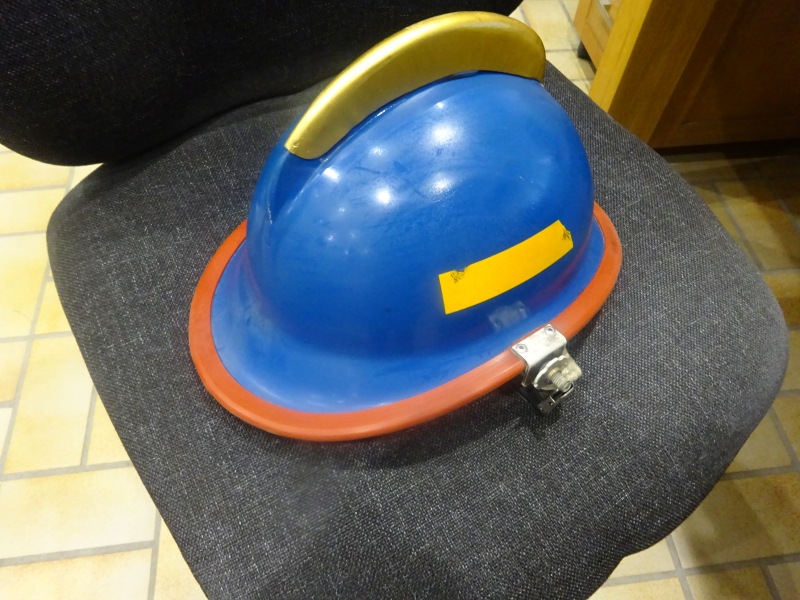 Helm eines norwegischen Feuerwehrmannes mit goldenem Messingkamm - Rangabzeichen Hauptmann ?-in sehr guter Erhaltung, komplette Innenausstattung, etwa um 1970/80 siehe Fotos und mein egun