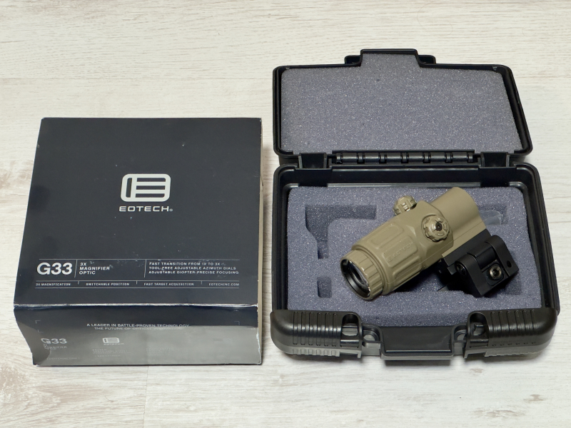 Zum Verkauf steht ein gebrauchter EOTECH G33 Magnifier in tan in sehr gutem Zustand.