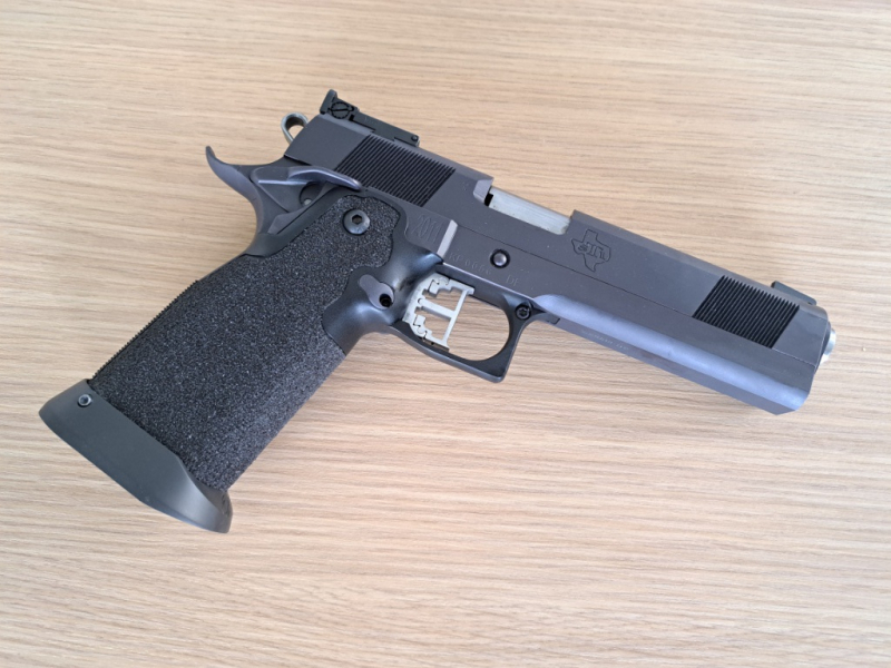 - Klasklarer 1150g mit SVI Inlets - Saugende Passungen - Accurails - Absolut zuverlässig - Super präzise <30mm/5 Schuss auf 25m - Edelstahl Mag well / Magazintrichter PVD beschichtet - Gewicht: 1250g - LPA Visier - PVD beschichtet / schwarz Eloxiert - Zubehör wie Verschlussfang mit Daumenauflage (PVD beschichtet), Magazine, Holster, Federn, Griptape vorhanden und können mit erworben werden. - Neupreis heute vermutlich 7000€