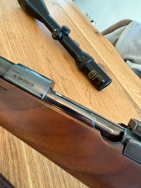 Hallo zusammen, zum Verkauf steht mein gepflegter 98er im Kaliber .30-06. Der 98er befindet sich in einem sehr guten Zustand und schießt Loch in Loch! Er hat einen Feinabzug mit zusätzlichem franz. Rückstecher. Die Brünierung ist sehr gut, Schaft ebenfalls. Der Schaft hat einen Edelholzabschluss und eine bayrische Backe. Das montierte Schmidt & Bender 2,5-10x50 im Absehen kann wiederholgenau abgenommen werden und ist natürlich mit dabei. Der Zustand des Laufes innen ist ebenfalls hervorragend - siehe Bild. Die V-Seriennummer verweist auf dem DWM-System der Firma Waffen Velser. Der Gewehrriemen ist mit dabei. Ich würde bevorzugen, wenn das Gewehr abgeholt wird - Versand ist jedoch nach Überprüfung der EBW auch möglich. Das Gewehr ist eingeschossen und kann bei Abholung auch gerne im Revier Probegeschossen werden. Bitte MyGun beachten. Bei Abholung gibt es ca. 30 Schuss Munition mit dazu. Bei Fragen gerne anrufen - Tel: 0151 11129182. Viele Grüße Michael