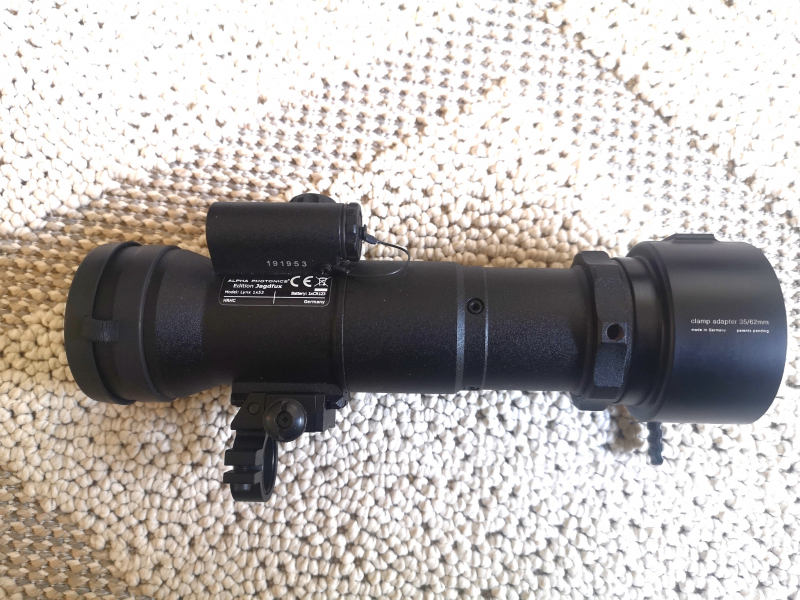 Ich biete ein Nachtsichtvorsatzgerät mit IR-Strahler, Adapterring 35/62mm und Okular. Montiert war das Vorsatzgerät auf einem 56er Zielfernrohr. Es handelt sich um das Lynx Echo 1x53 mit Alpha PHOTONIS Röhre grün, Edition Jagdfux. Das Gerät ist geeignet als Vorsatz auf der Waffe, sowie als Handgerät zur Beobachtung (Dual Use). Das Nachtsichtgerät und der IR-Straler werden mit einer CR123 Batterie betrieben. Das Gerät befindet sich in einem guten Zustand. Ich habe das Gerät als Vorsatzgerät verwendet und nur für den Schuss eingeschaltet. Dementsprechend hat die Röhre keine hohe Laufzeit. Seitdem ich das Lynx benutze habe ich zweimal die Batterie gewechselt. Das Okular ist unbenutzt. Ich verkaufe das Nachtsichtvorsatzgerät wegen Modelwechsel. Das Gerät funktioniert einwandfrei. Gerne auch Kauf nach Begutachtung vor Ort. Gekauft habe ich es Dezember 2020. Der Neupreis lag bei 4410 Euro. Bitte die Gesetzeslage im jeweiligen Bundesland prüfen. Rücknahme oder Garantie ausgeschlossen.