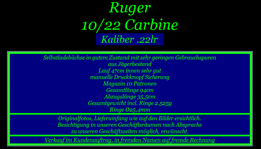 Artikel-ID: 20337926  •  ArtikelNr. des Verkäufers: 12343  •  Kategorie: Jagdwaffen > KK-Büchsen > KK-Selbstladebüchsen
