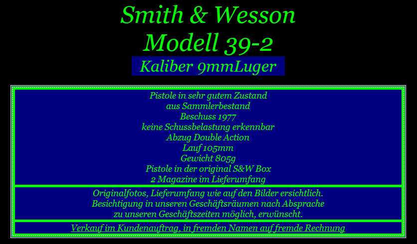 Artikel-ID: 20337946  •  ArtikelNr. des Verkäufers: 12713  •  Kategorie: Grosskaliber Kurzwaffen > Gebrauchspistolen > Smith & Wesson