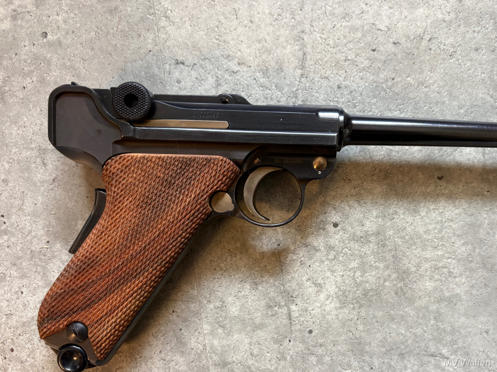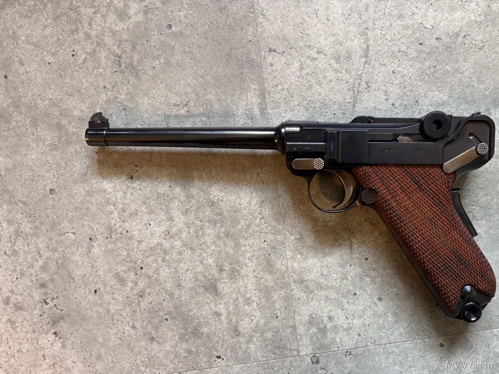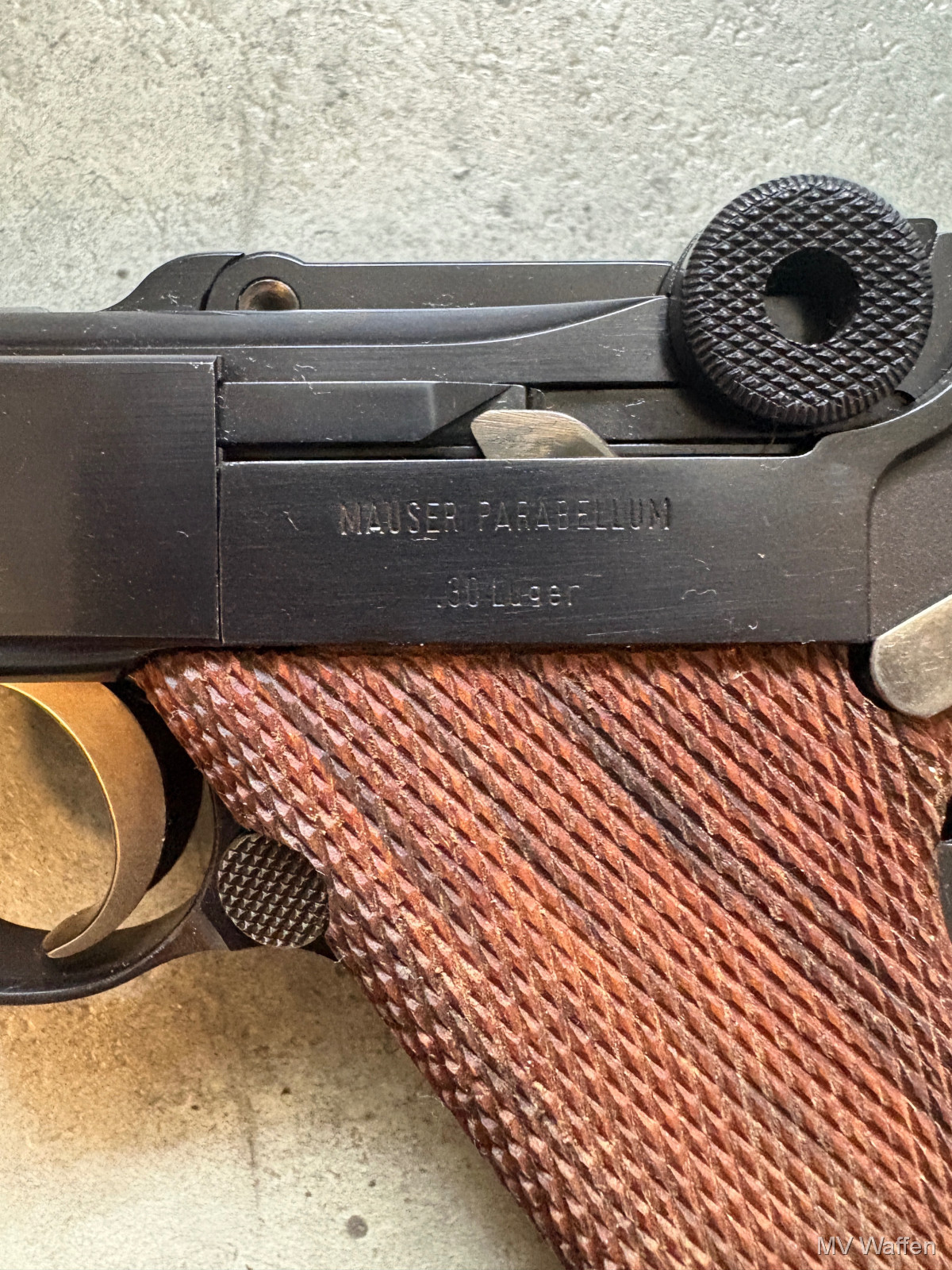 Mauser Luger 08 lange Pistole in Kaliber .30 Luger mit gültigen Beschuss von 1971. Die Parabellum Pistole ist eine moderne Waffe, mit dem Flair des Historischen. Genau das richtige für Schützen, die 08 unbesorgt schiessen wollen. Zuschlagen bei der Gelegenheit. Direktversand an Europäische Händler möglich. Fragen Sie bitte nach den Versandkosten. Wie immer völlig unbearbeitet um Ihnen einen ehrlichen Eindruck des Zustandes zu ermöglichen.. Diese Sammelwaffe kann natürlich gerne, nach vorheriger Absprache in Wolfratshausen besichtigt werden