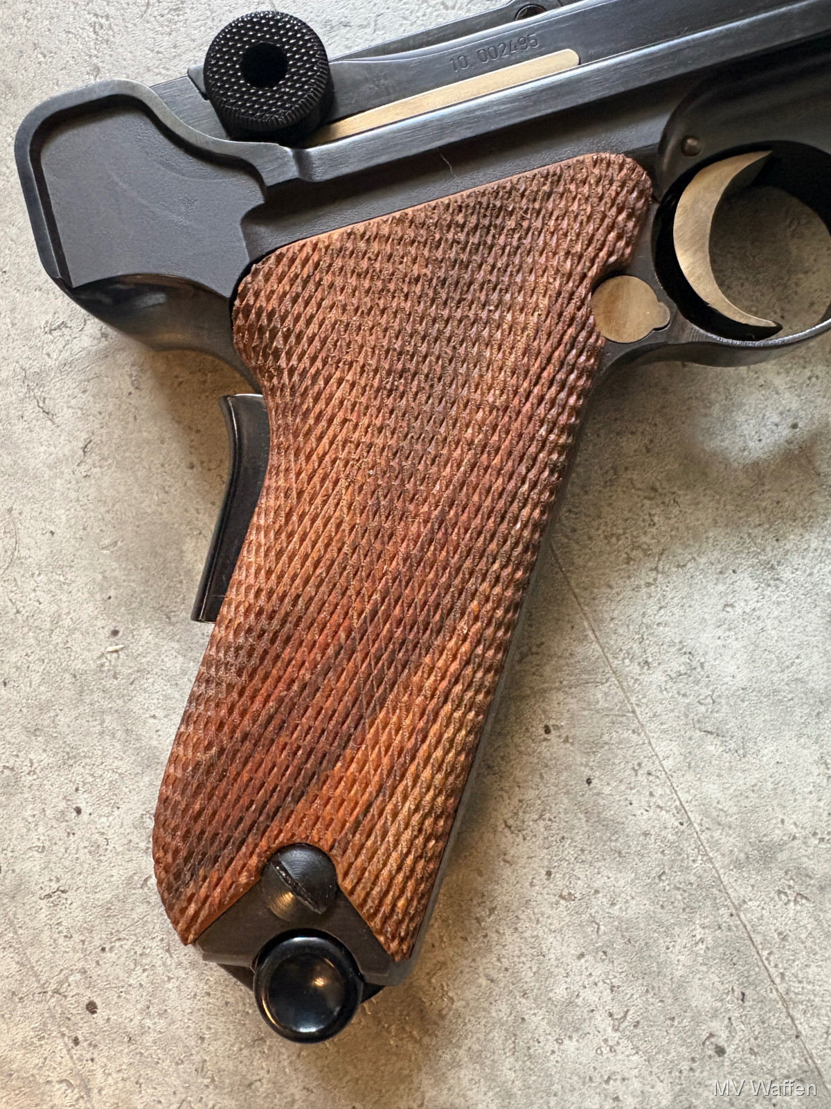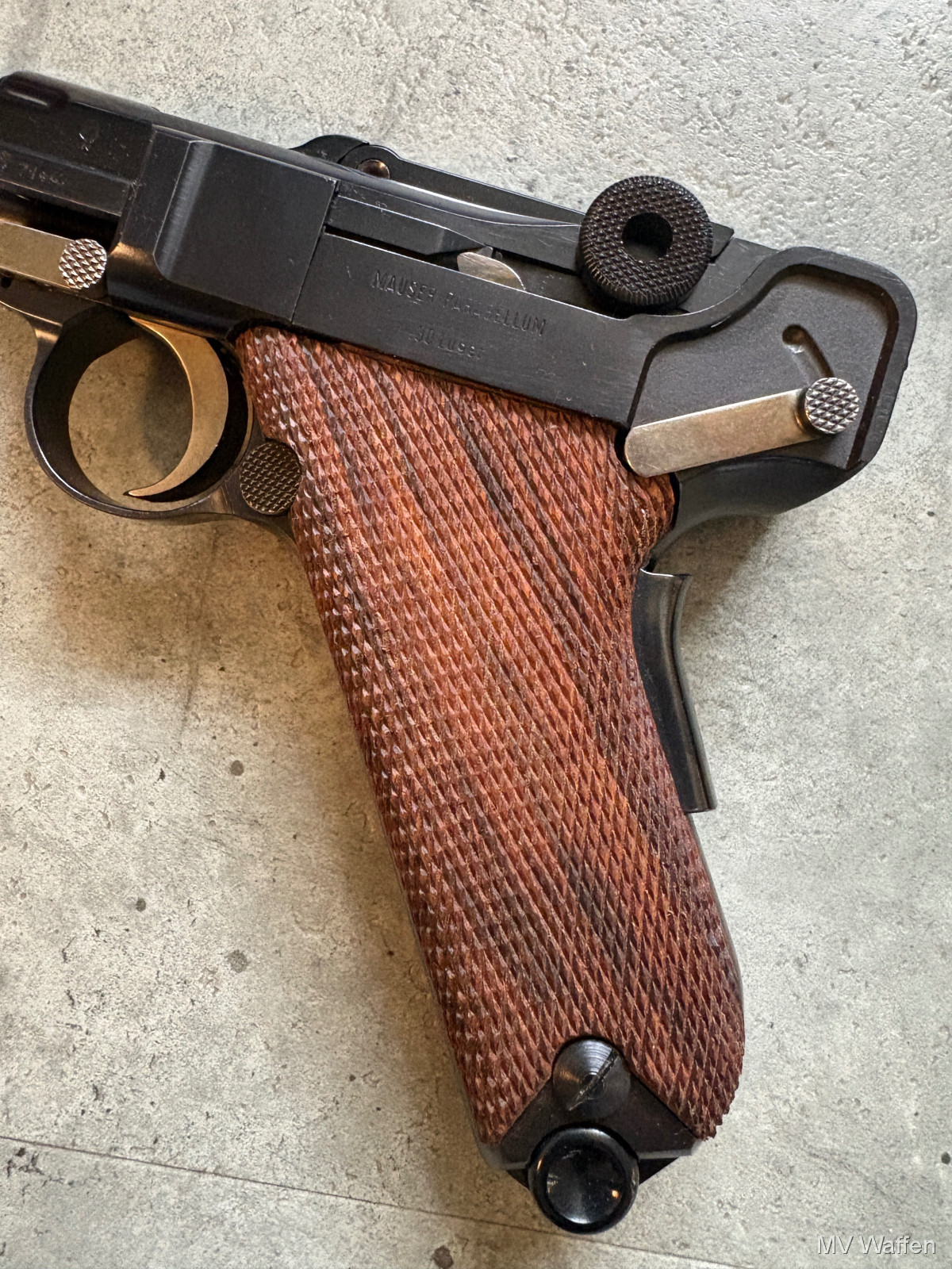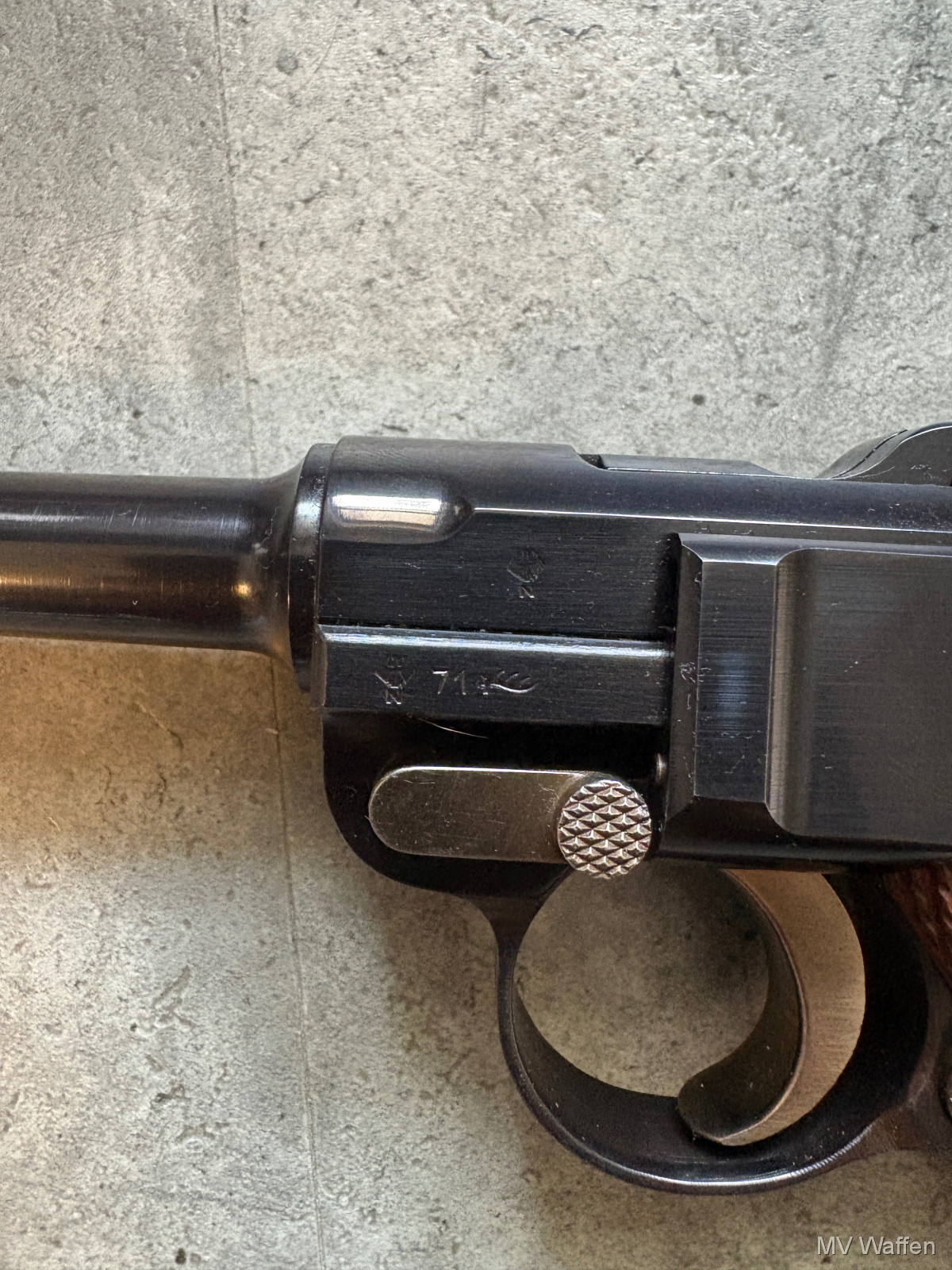 Mauser Luger 08 lange Pistole in Kaliber .30 Luger mit gültigen Beschuss von 1971. Die Parabellum Pistole ist eine moderne Waffe, mit dem Flair des Historischen. Genau das richtige für Schützen, die 08 unbesorgt schiessen wollen. Zuschlagen bei der Gelegenheit. Direktversand an Europäische Händler möglich. Fragen Sie bitte nach den Versandkosten. Wie immer völlig unbearbeitet um Ihnen einen ehrlichen Eindruck des Zustandes zu ermöglichen.. Diese Sammelwaffe kann natürlich gerne, nach vorheriger Absprache in Wolfratshausen besichtigt werden