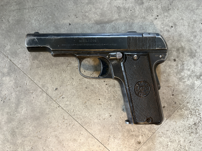 Sehr schöne kleine Melior Taschen Pistole in Kaliber 7,65 Browning. In Sammelwürdigen Zustand siehe Bilder. Lauf Gut. Natürlich wie immer völlig unbearbeitet um Ihnen eine ehrlichen Eindruck der Waffe vermitteln zu können. Direktversand an Europäische Händler möglich. Fragen Sie bitte nach den Versandkosten. Die Rechnung für die Waffe liegt dann im Original dem Paket bei. Waffe kann natürlich gerne, nach vorheriger Absprache in Wolfratshausen besichtigt werden