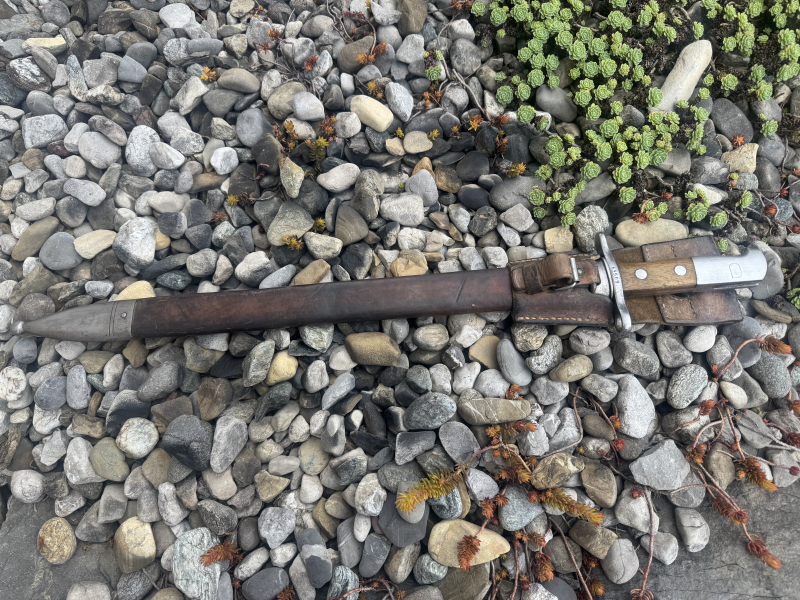 Sie bieten auf ein Faschinenmesser 1914 (auch Sägebajonett 1914 genannt) mit Lederscheide Das Bajonett ist in einem gebrauchten Zustand (siehe Karabiner 00/11 hergestellt ist es von eaffenfabrik Neihausen passt super auf jeden Karabiner 31 (K31), von den Massen her passt es aber auch auf den Karabiner 11 (K11) und den Karabiner 00/11 (K00/11).