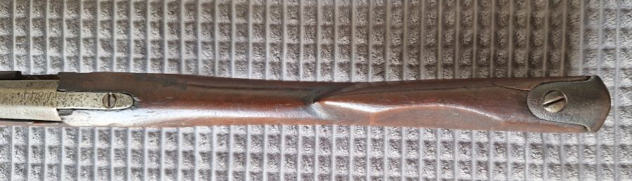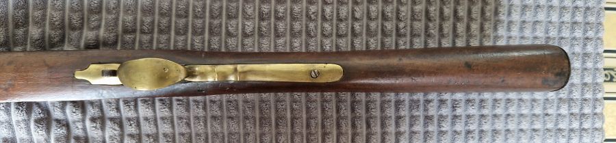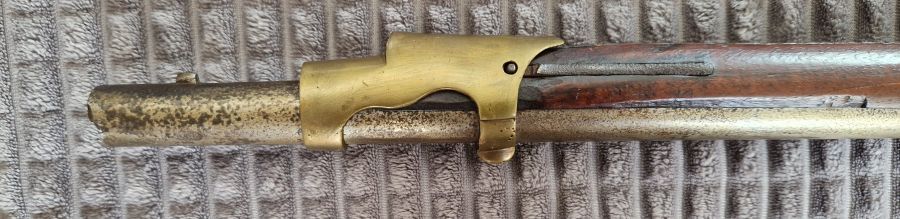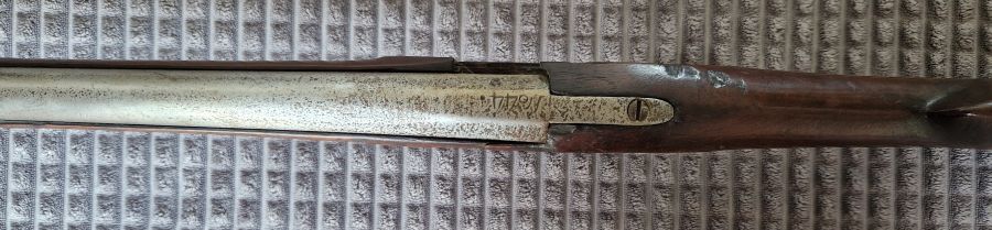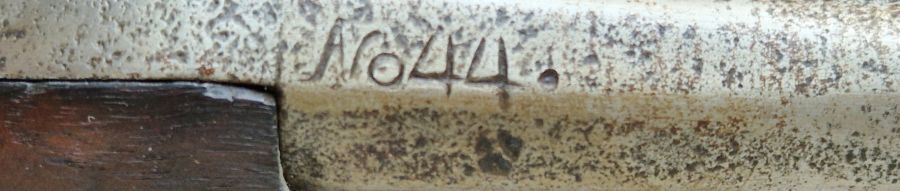 Langer, nach kurzem Achtkant in rund übergender Lauf. Cal. 18,6 mm glatt. Bajonettwarze. Am Ansatz seitlich Marke. Laufoberkante No 44.