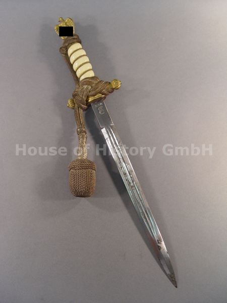 Kriegsmarine Offiziersdolch mit Portepee, Hersteller: WKC Solingen, weißer Griff, OHNE SCHEIDE !