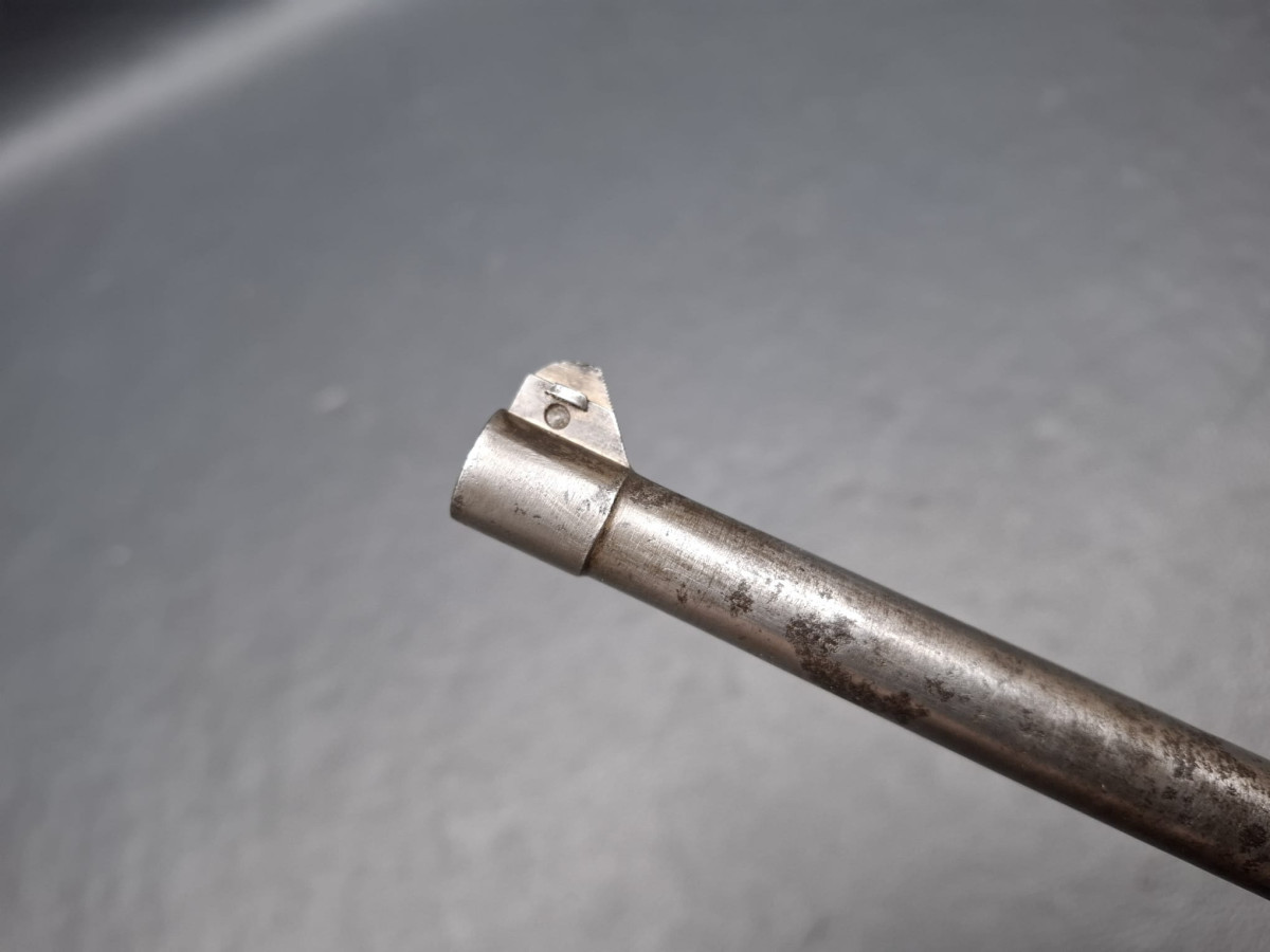 Brünierung partiell abgegriffen, s Bilder, Lauf und System partiell mit leichten oberflächlichen Närbchen, verhältnismäßig aber noch gut
