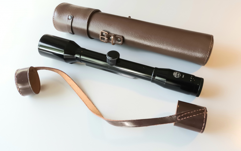 Zielfernrohr Dr. Bischoff Braunschweig DINOX 6x42 mit Absehen 1 aus den 50er Jahren . ZF war noch nie montiert und ist bis auf ganz geringe Lagerspuren neuwertig im Top-Sammlerzustand . Wird geliefert mit originalen Leder Linsenschutz und Köcher !