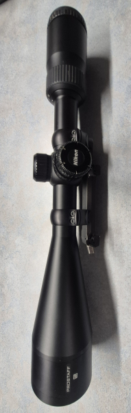 Sie bieten auf ein Zielfernrohr Nikon Prostaff 5, 3,5-14x50 mit Paralaxenausgleich und 2 verschiedenfarbigen Leuchtkreuzen (rot und grün).