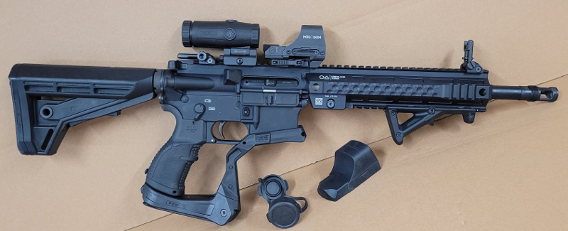 Mit BUIS, Zweibein, Holosun Reddot und Magnifier