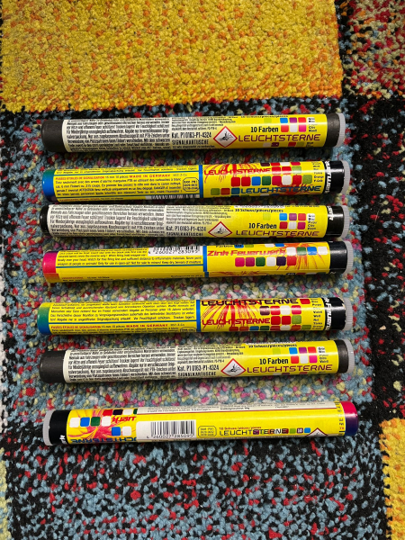 Zum Verkauf steht je Sofortkauf eine Rolle a 10 Stück 15mm Leuchtsterne der Firma Zink für Schreckschusswaffen.