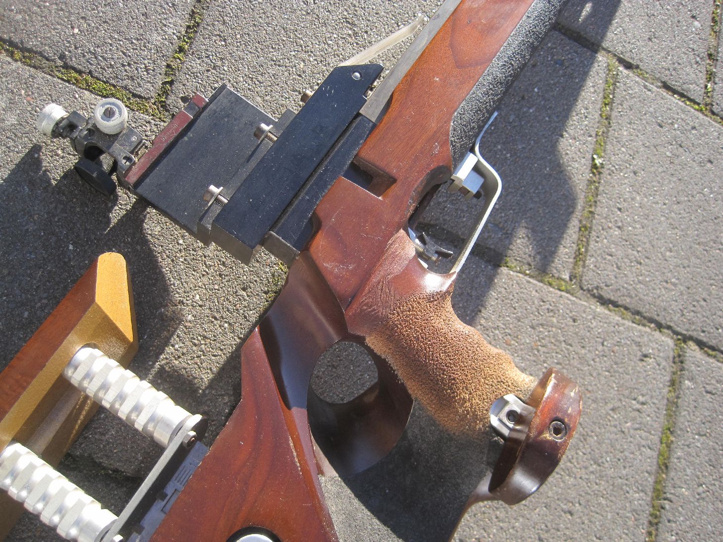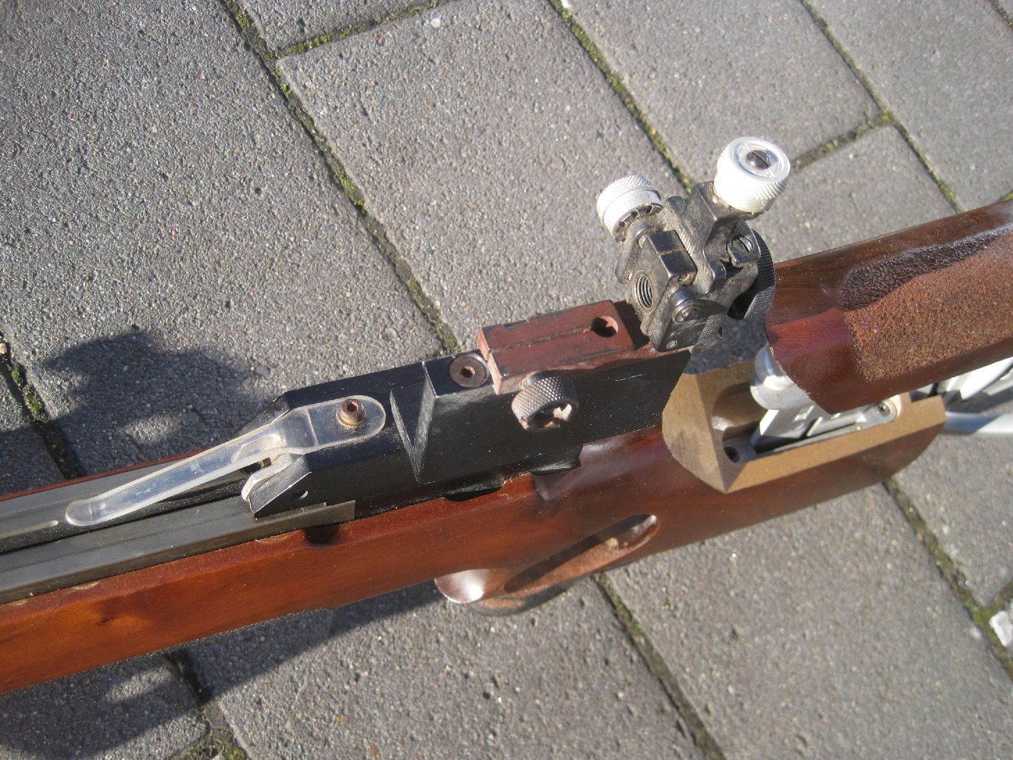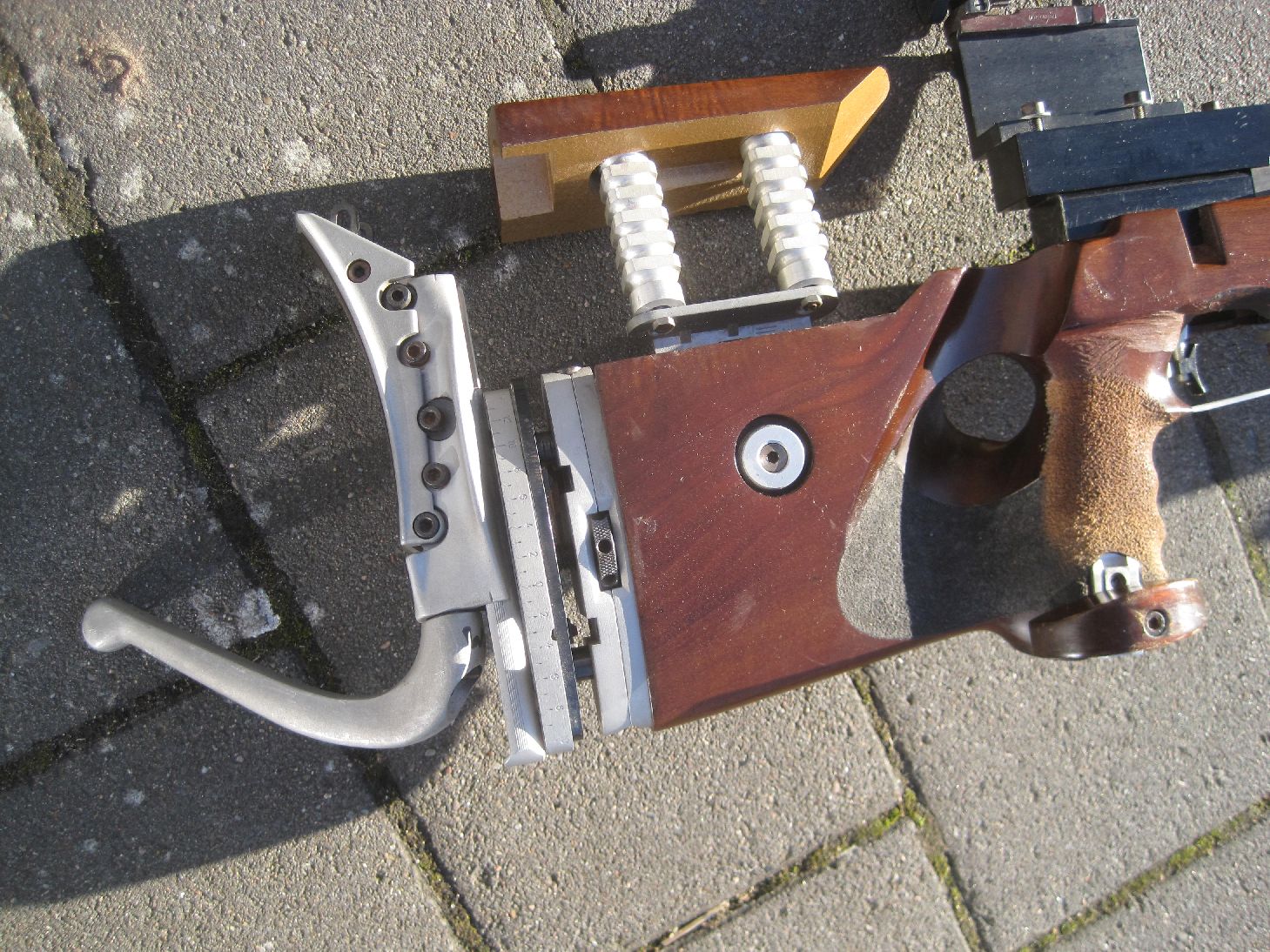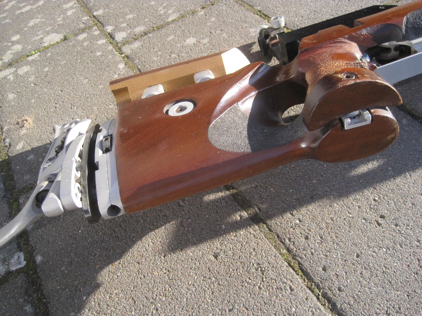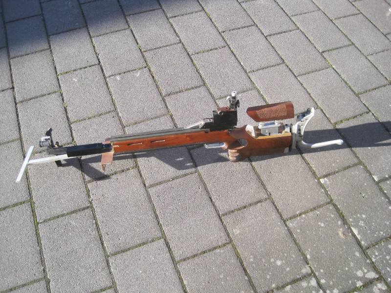 Armstütze und verstellbare Schaftbacke , Feineinstellbarer Abzug und Diopter wohl von Anschütz