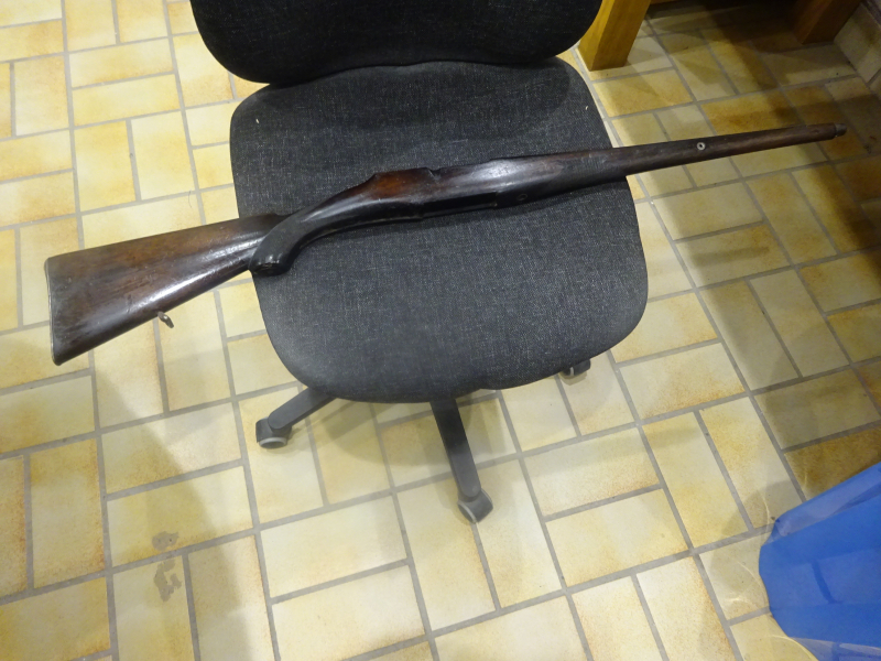 jagdlicher Schaft mit besonderer Länge von 95 cm, schmale Bauform, vermutlich ehemals militärischer Schaft, mit Riemenbügel, deutsche Backe, Fischhaut, siehe Foto und mein egun