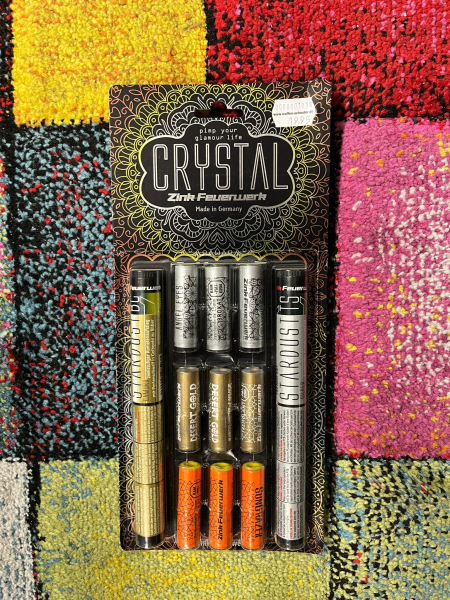Zum Verkauf steht ein Blister (29 Schuss) "Crystal" 15mm Pyromunition der Firma Zink für Schreckschusswaffen.
