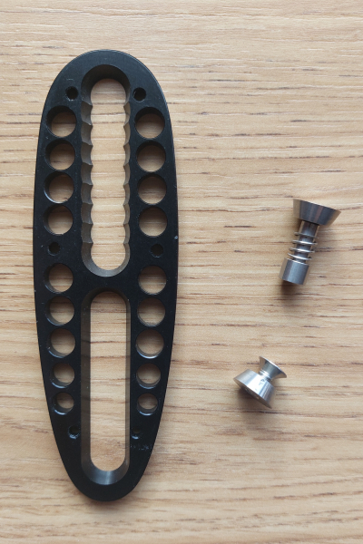 Ich biete ein unbenutztes höhenverstellbares Zwischenstück (GRS Height ADJUSTABLE RECOIL PAD) für GRS-Schichtholzschäfte (ohne Schaftkappe) zum Kauf an. Das Zwischenstück ermöglicht eine werkzeuglose Höhenverstellung der Schaftkappe (Push-Button-Lösung). Die Höhenverstellung erfolgt in 4 mm-Schritten und reicht von -16 mm bis +28 mm. Das Zwischenstück ist aus hart anodisiertem Aluminium gefertigt. Das Zubehör (Verschraubung) ist aus Edelstahl.