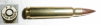 eine Deko-Patrone .25-45 Sharps ( FC .25-45 SHARPS) von der neuen Firma Sharps Rifle co. entwickeltes Kaliber aus der .223 Rem-Hülse. Patrone ist ohne Ladung, zum Nachweis ist eine Klapper-Kugel eingelegt.