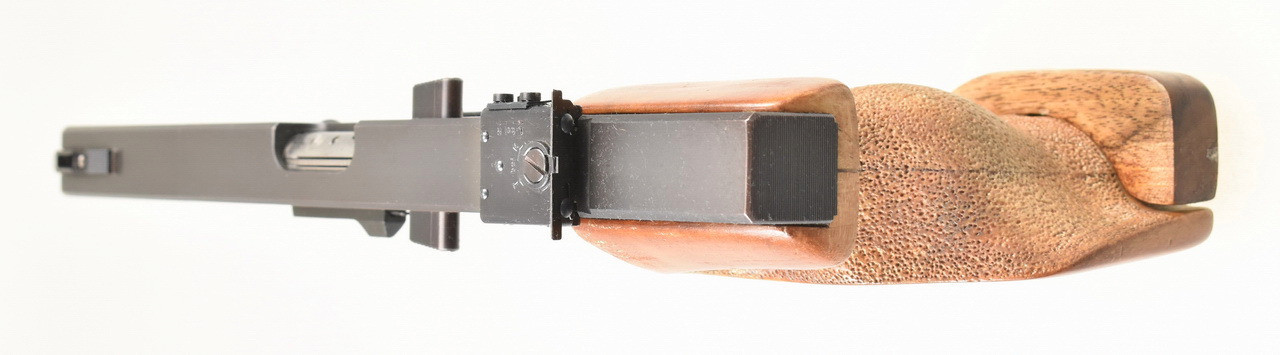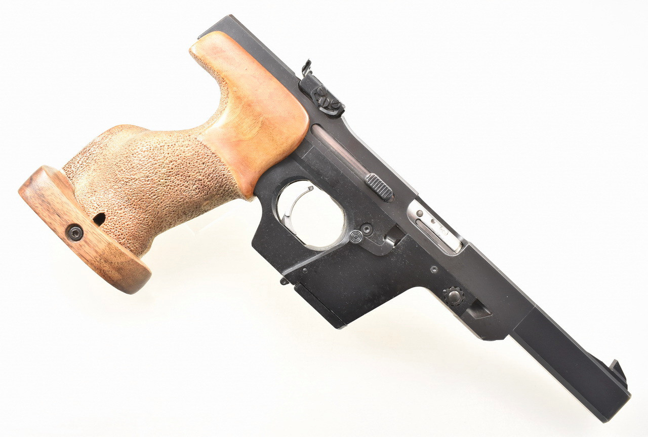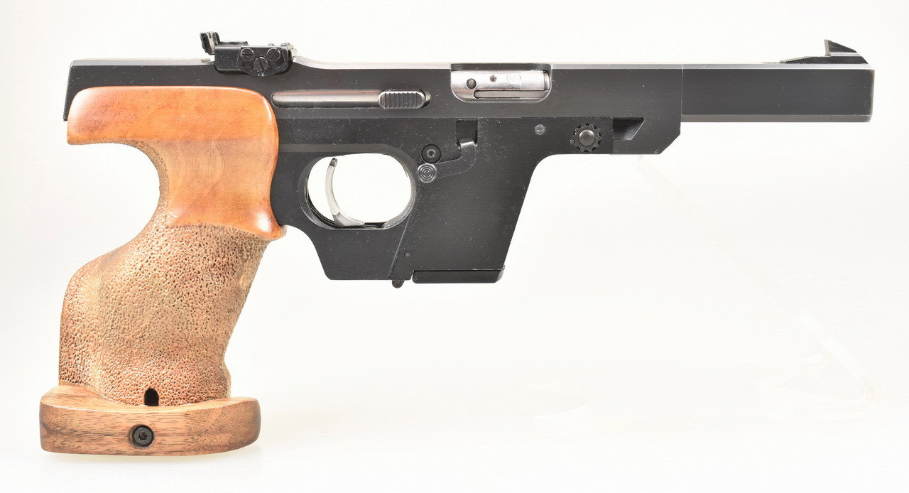 114mm langer, spiegelblanker Lauf. Beschuß 1985. Magazin für 5 Patronen. Höhen- und seitenverstellbare Mikrometervisierung. Balkenkorn. 219mm lange Visierlinie. Punzierte Rechtsschützen Formgriffschale in Griffgröße M mit verstellbarer Handkantenauflage. Zustand und Details siehe Bilder.