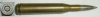 eine Deko-Patrone 7x73 vom Hofe mit Gürtel ( vom HOFE 7mm SUP.EXPR ) nur sehr kurze Zeit etwa 1930 gefertigtes Kaliber. Patrone ist ohne Ladung, zum Nachweis ist eine Klapper-Kugel eingelegt.