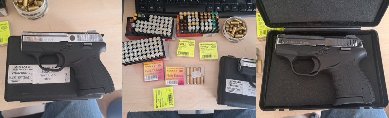 Verkaufe gebrauchte Schreckschusswaffe mit allerhand passender Munition , siehe Bilder. Waffe , klein , handlich, mit mir zugehörigen Waffencase verkauft. Grundsätzlich funktioniert sie, hat aber leider öfters Hakler und wirf die leere Hülse nicht aus. Sie wurde von mir nur 1x gereinigt und wird auch mit die Ursache sein. Die Waffe gehörte meiner Tochter, habe ab und an mir , mit der Waffe geübt und sie hat max 200 Schuß abgegeben.