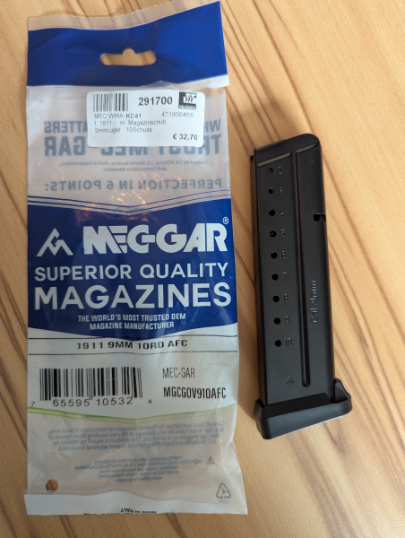 Zu Verkaufen ist ein Magazin von MEC-Gar für 1911er Pistolen.