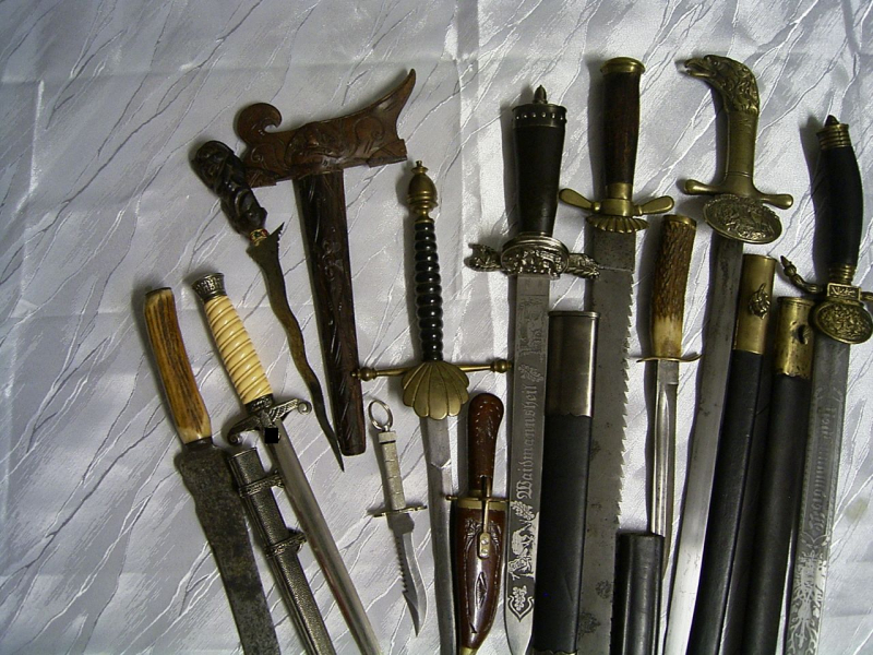 Aus einer Sammlungsauflösung. Dolche, Messer, Hirschfänger, 11 Stück als Ersatzteilspender, mit und ohne Scheide. Versicherter Versand mit DHL 10,00€.