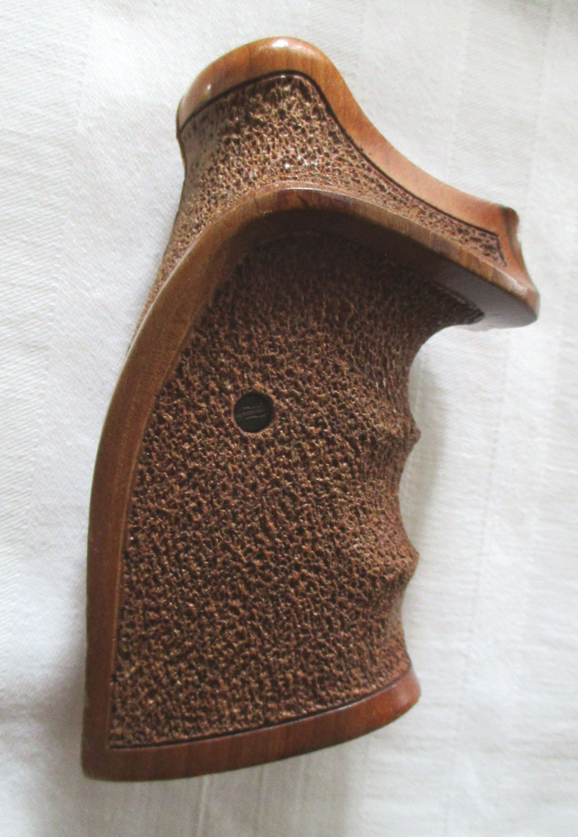 Hochwertige Nill Griffschalen für Linkshänder, passend für Smith & Wesson K- und L-Rahmen (Round Butt). Die Griffschalen befinden sich in einem sehr guten Neuwertigen Zustand. Typische Nill-Qualität: hervorragende Verarbeitung, edles Holz und optimale Ergonomie mit optimaler Anpassung für Linkshänder.