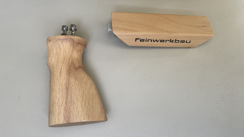 angeboten wird ein Griff und eine Backe für das Feinwerkbau 800 Evolution Alu Pressluftgewehr, Farbe Natur.