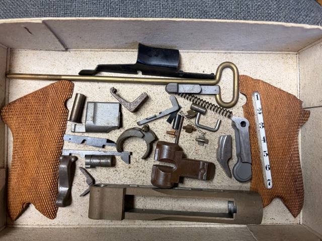 Aus meiner Sammlung: Originale Ersatzteile für eine Pistole Mauser Parabellum, Mod. P.08. Rohteile wurden so bei der Fa. Mauser, Oberndorf am Neckar, in den Jahren 1970 bis Ende 1990 für Sondermodelle Parabellum gefertigt. Interessant für Sammler von Luger-Pistolen. So nicht mehr auf dem Waffenmarkt zu bekommen. Teile sind wie abgebildet. Frei zu erwerben.