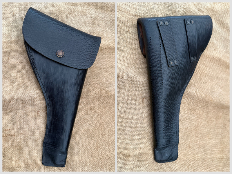 Sie bieten hier auf ein Holster, passend für S&W 1917 und auch für WEBLEY MK VI .455 Holster. Es ist innen mit einem Stempel wie folgt gekennzeichnet: S. N. Ltd. 1941. Der Zustand ist gebraucht und die Nähte sind fest. Vorn hat es einen kleinen Riss, siehe Foto.