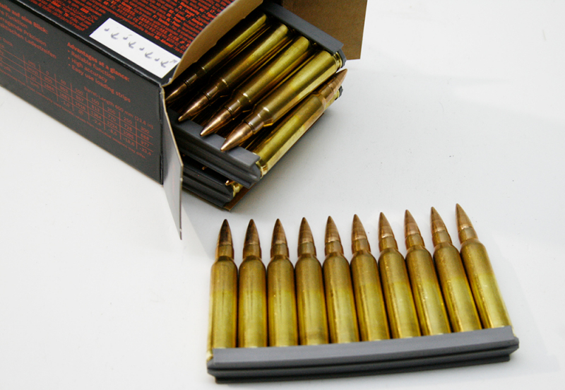 Eine Packung (50 Schuss) wiegt 0,7kg