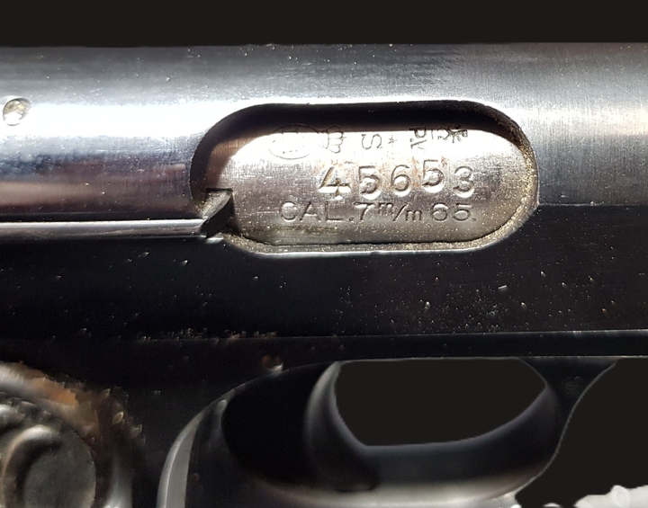 Sonstiges: inkl. Lederetui, Horngriffschalen, 9-Schuss-Magazin, Verschluss mit graviertem „W“ – Königin Wilhelmina der Niederlande