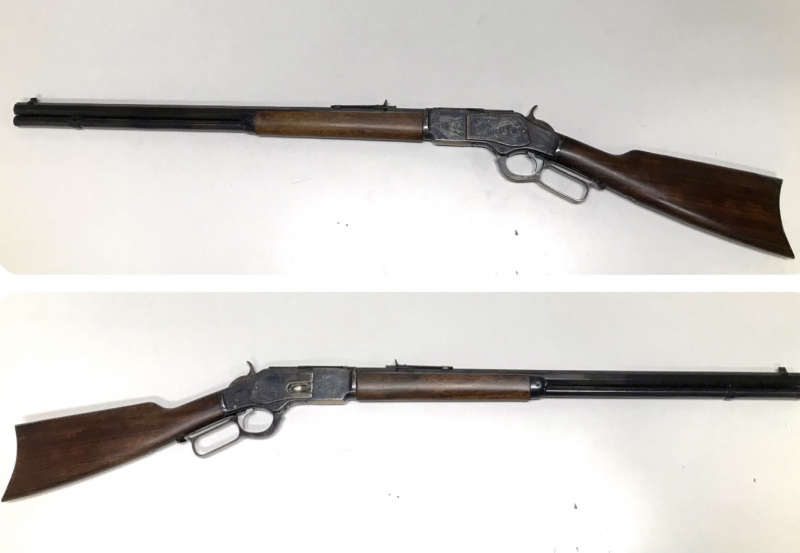 Hier in der Version mit Delux Rollgravur, büntgehärtet und mit schwerem 24“ Achtkantlauf im Kaliber 44-40.
