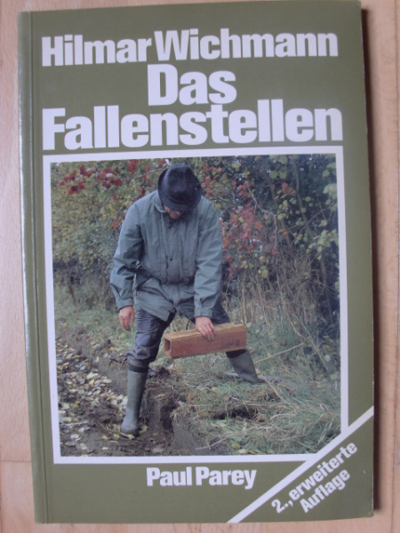 DAS FALLENSTELLEN - Eine reich bebilderte Anleitung für erfolgreiche Fallenjagd - von Hilmar Wichmann, Verlag Paul Parey, 2. Auflage 1986, 108 Seiten mit 182 Fotos und 10 Zeichnungen - Inhalt u.a.: Die Revierkarte / Die Conibear-Falle / Das Spannen der Eisen / Der Schwanenhals / Der Marder-Fangbunker / Marderfang in bewohnten Gebieten / Die Kastenfalle / Die Scherenfalle / Marderschlagbaum / Bisamfang / Krähenfang / Habichtfangkorb / Reizjagd auf den Fuchs / Luderplatz / Kunstbau / Waschbärfang / und anderes mehr - Guter Zustand
