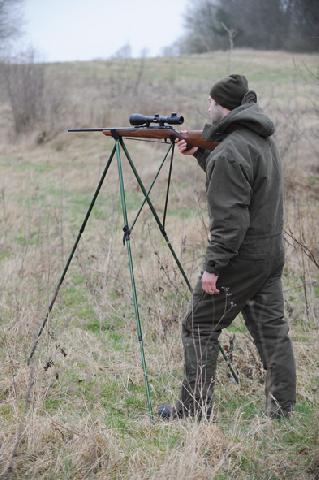 Dank der ausklappbaren und mit einem verstellbarem Band in der Höhe verstellbaren Hinterschaftauflage geben Sie der aufgelegten Waffe auch am Hinterschaft die nötige Ruhe und Stabilität für präzise Schüsse auch auf sehr weite Entfernungen, wie z.B. auf der Stoppel mausende Füchse, Feldrehe, Sauen oder bei der Jagd im Ausland. Auch zum sitzend Schiessen oder auf dem Hochstand zu verwenden. Den Höhenwinkel regeln Sie schnell durch Stellungsänderung des vorderen Beines am Dreibein