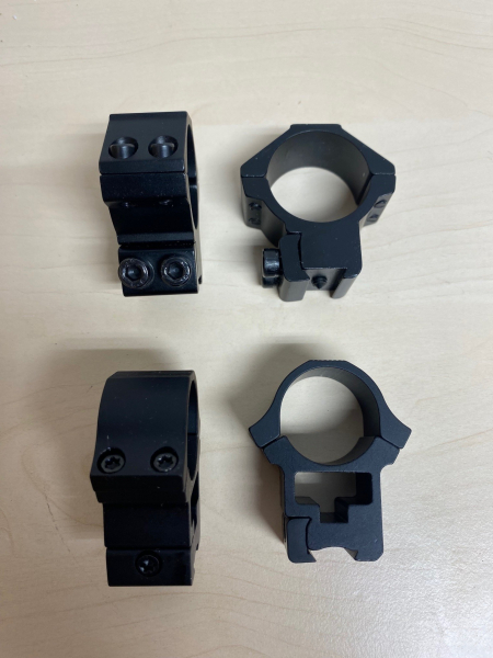 Zum Verkauf kommen zwei Paar Zielfernrohrmontageringe für 11 mm Prisma (Luftgewehr und KK). Jeweils einmal Ringdurchmesser 30 mm und 25,4 mm (1 Zoll).