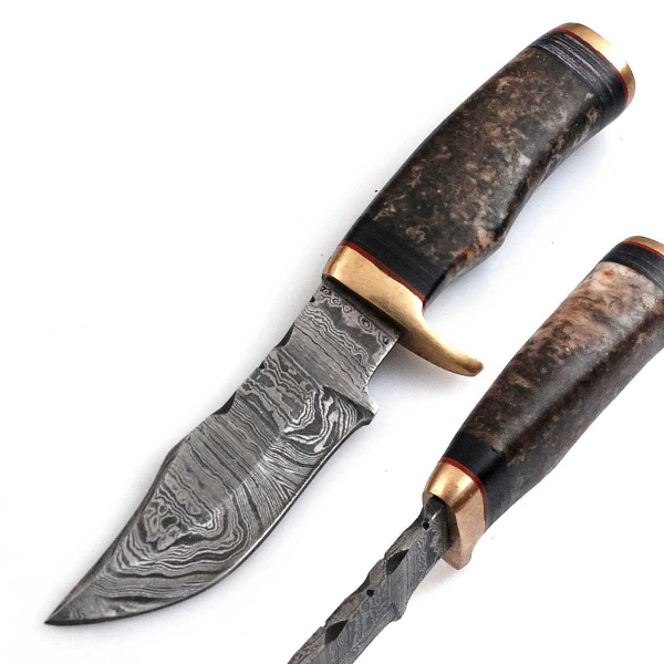 Hier erhalten Sie ein sehr schönes Hand geschmiedetes Damast Jagd Messer in reizvollem Torsion Muster.