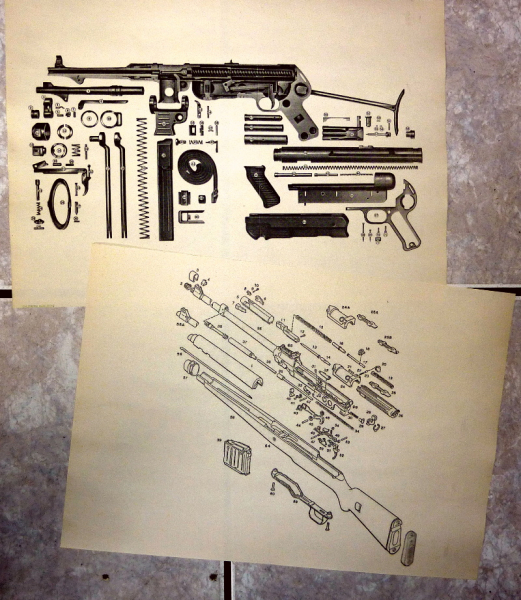 absolut tolle Stücke - Skelettplan / Explosionszeichnung / Schnittzeichnung von der der MP38 / MP 40 und dem G43 / K43 vom WK2 in allen wesentlichen Teilen bezeichnet / durchnummeriert. So kann selbst der Laie leicht jedes fehlende Stück finden, sein geliebtes Stück selbst zusammenbauen,....