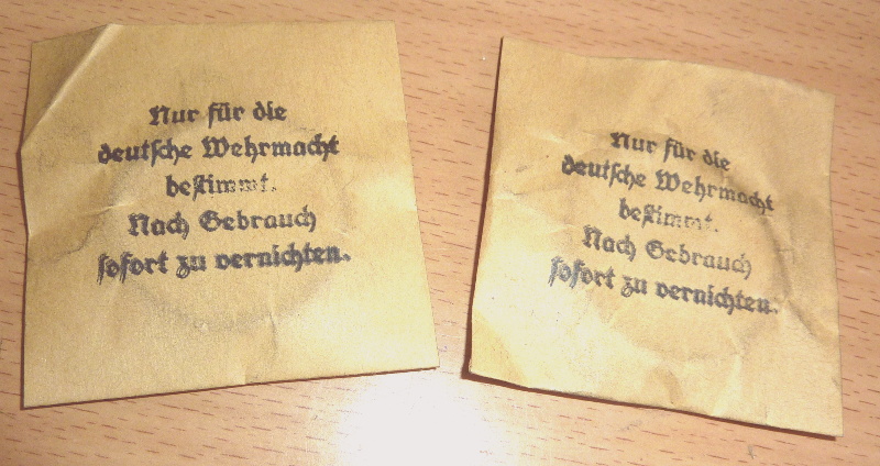 absoluter Leckerbissen für WK2 Sammler - in dieser Auktion ergattern sie 2 originale Kondom Packungen der Wehrmacht aus dem WK2; diese sind heutzutage so gut wie nirgends mehr zu finden; auch ganz logisch - diese wurde aufgebraucht und dann weggeschmissen. Und die wenigen Packungen die den Krieg überlebt haben wurden zumeist in der Nachkriegszeit verwendet. Somit heutzutage nur mehr ganz selten zu finden; ich selbst hatte in meiner 40jährigen Sammlertätigkeit das Glück diese Kondom Packungen der Wehrmacht in Uniformjacken aufzufinden; dort wurden sie sozusagen "einfach vergessen" und sind somit für die Nachwelt erhalten geblieben;