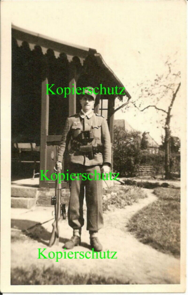 absolut top selten zu finden - top seltenes Repro Foto eines Scharfschützen der Wehrmacht. Ausgestattet ist der Soldat mit seinem G43 / K43 + seinem ZF4, sowie der dazugehörigen 2teiligen Munitionstaschen, seiner Pistole, Feldstecher,....