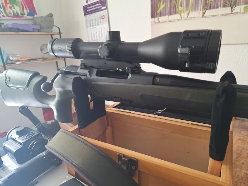 Gear Gewehrriemen HELIX. Weiterhin noch zwei Ersatzmagazine 5 Schuss. Der Zustand der Waffe ist gut. Das trifft auch für das Glas zu. Alles gepflegt und keine Beschädigungen. Objektiv und Okular top ohne Kratzer. Schaflänge 36.5 cm. Schussleistung perfekt eingeschossen mit GEGO Plus. Das Pulsar Krypton inklusive Zubehör und Adapter gehören ausdrücklich nicht zur Auktion. Es wird in einer weiteren Auktion angeboten. Kein Internationaler Versand no shipping. Bieter aus dem Ausland setzten sich vor Gebot bitte mit mir in Verbindung. Selbstabholung u. Probeschuss im Revier selbstverständlich möglich. Über die passende Munition kann dann vor Ort gesprochen werden. Bitte keine Preisverhandlungen vorab per Email und keine Angebote unter dem Startpreis. Paket hatte so wie es hier angeboten wird einen Gesamtpreis rabattiert von 6.400 €. Originalrechnung vom 23.05.2022 liegt vor und kann der Käufer erhalten. Das abgebildete Pulsar Krypton kann für 1.350 EUR übernommen werden. Es ist wenig genutzt und hat keine 10 Betriebsstunden, da es nur selten und nur bei Schussabgabe auf SW genutzt wurde. Alle Unterlagen, Zubehör u. Kartons sind vorhanden. Wurde ebenfalls 2022 angeschafft. Kaufpreis damals 3.500 €.