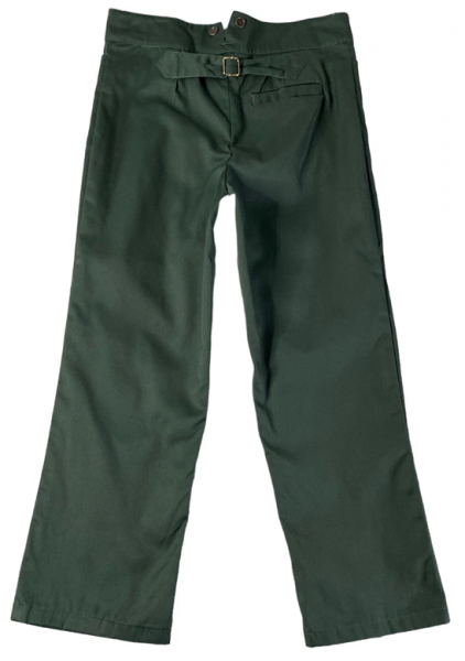 verkaufe: eine schöne Old Style Hose aus den USA - angegeben mit Größe 40 bzw. XL (Maße: einfache Bundbreite ca. 48 cm, Gesamtlänge ca. 110 cm, Schrittlänge am Innenbein gemessen ca. 71 cm) - MADE IN TEXAS, USA von der Firma BRASSADA (nicht mehr existierender Hersteller von Vintage Ranch and Cowboy Wear und Old Style Clothes) - stabiler dunkelgrüner Baumwollstoff, Knöpfe für Hosenträger (alle Knöpfe wurden von mir nochmal mit stabiler Sehne nachgenäht), Verstellriegel am Rücken - so gut wie neuwertig, wurde nur einmal für ein Fotoshooting getragen - vor Jahren gekauft, lag sie seit dem eingepackt im Schrank - sehr guter Zustand (Siehe Fotos!) - reale Farbe der Hose etwas heller als auf den Fotos