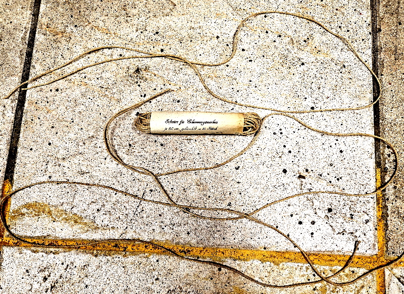 Die Schnüre sind jeweils 80 cm lang und wie schon erwähnt ergattern sie hier auch gleich 3 dieser seltenen originalen Schnüre. Ich habe hier seinerzeit auch noch mehrere komplette Bündel aus diesem Lagerbestand (siehe bei den Fotos) ergattern können und so ist mir auch das Herstellerjahr 1944 sowie auch der Hersteller selbst bekannt. Konkret ist bei den vollen Bündel der Hertsellercode bza aufgedruckt und dieser Code stand seinerzeit für die Firma BIGERL GEORG, GURTWBEREI, SCHNUR- UND SEILWARENFABRIK, FREILASSING / BAYERN