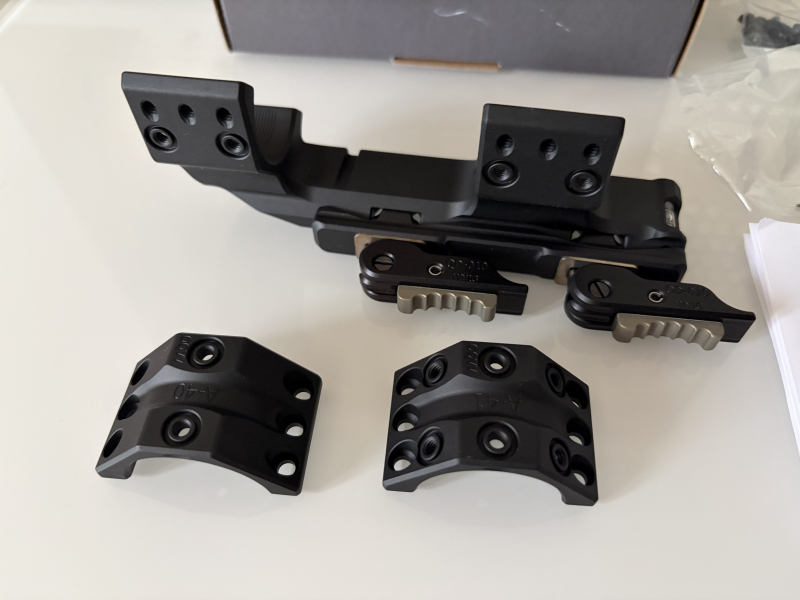 Schnell abnehmbare Cantilever-Halterung mit Seitenklemme und zwei Hebeln auf der linken Seite der Halterung, mit Spannschrauben auf der gegenüberliegenden Seite des Halterungskörpers. Absolute Co-Witness-Funktion für die meisten aufsteckbaren Nachtsichtgeräte auf AR-Plattformen. Ermöglicht die Montage des Zielfernrohrs 40 mm/1,57 Zoll weiter vorne als mit einer Nicht-Cantilever-Halterung.