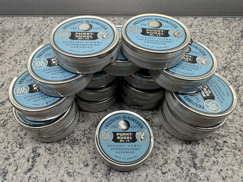 18 Dosen - RWS Präzisions-Rundkugeln - 4,5mm wie auf den Fotos zu sehen.