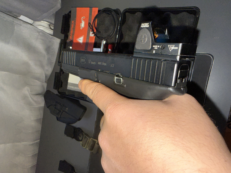 Glock 17 t4e umarex mit trijicon red dot visier. Verschießt Gummi, Pfeffer und Stahl. Im Lieferumfang sind Gummi und pfefferkugeln inbegriffen. Originalkoffer ist ebenfalls vorhanden und wird mitgeliefert. Außerdem gibt es noch ein schnellziehhokster dazu. Alles wie auf den Bildern.